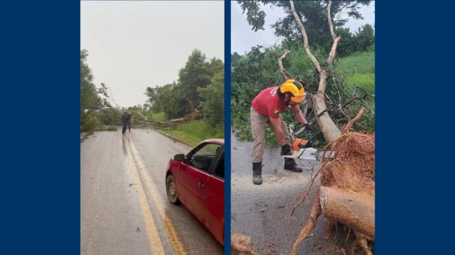 A desobstrução da pista contou com a atuação da equipe de salvamento, além do apoio de populares e do motorista de um caminhão que passava pelo local no momento do ocorrido. Após o trabalho, a árvore foi retirada da via e o tráfego voltou a fluir normalmente.