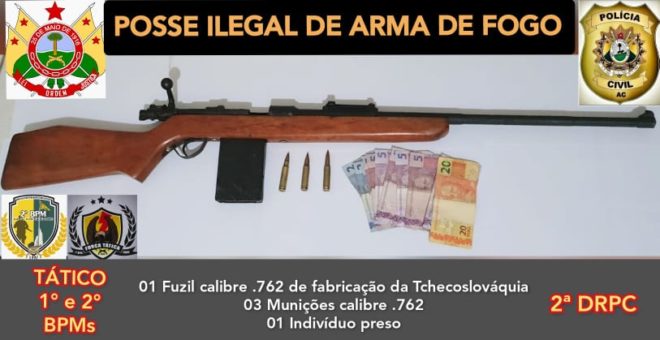 Uma ação dos Policiais Militares do 1° e 2° Batalhão juntamente com Policiais Civis da 2ª DRPC, resultou não prisão de um líder da facção Bonde dos 13, William Borges, de 28 anos e mais três faccionados na noite desta sexta-feira, 01, pelo crime de porte ilegal de arma de fogo e organização criminosa. As prisões aconteceram na travessa Beija-flor, no bairro Plácido de Castro, região da Baixada da Sobral, em Rio Branco.