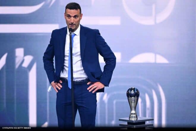 Na disputa, o argentino bateu nomes pesados da história do futebol. Carlo Ancelotti, do Real Madrid e Pepe Guardiola, do Manchester City, concorriam com o argentino pelo prêmio. Scaloni, de 44 anos, levou a Argentina ao título Mundial depois de 36 anos. Durante a Copa, fez ajustes em praticamente todas as partidas e viu a equipe prosperando.