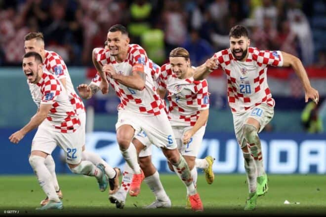 Na disputa de pênaltis, o Japão começou logo de cara atrás, com Minamino batendo fraco e parando em defesa de Livakovic, enquanto a Croácia converteu com Brozovic. No segundo pênalti, os japoneses perderam novamente, após Mitoma parar também no goleiro croata, mas desta vez Livaja desperdiçou. O Japão só foi converter na terceira penalidade com Asano. A falta de pontaria japonesa se confirmou na quarta cobrança, desperdiçada por Yoshida, e com brilho de Livakovic, que defendeu três dos quatro pênaltis cobrados pelos asiáticos.