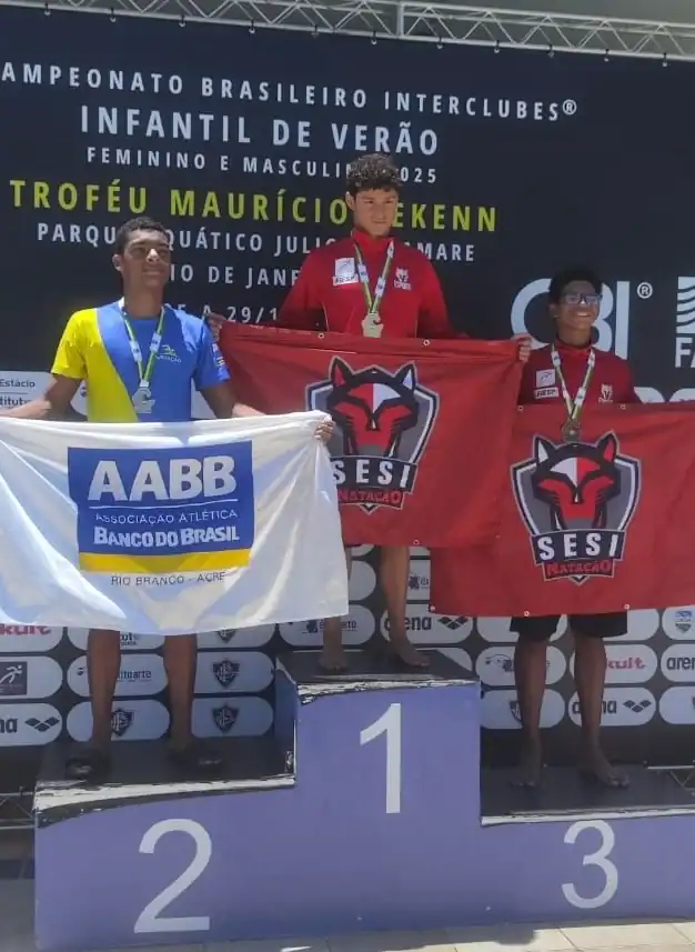 Luiz Antônio Jerônimo, da AABB, conquistou neste sábado, 29, no Parque Aquático Júlio Delamare, no Rio de Janeiro, a medalha de prata na prova dos 50 metros livres no Campeonato Brasileiro Infantil de Verão. O garoto acreano fez o tempo de 24”55(recorde Estadual Absoluto) e perdeu o ouro por 3 centésimos para o nadador Davi Tavares, do Sesi de São Paulo, mas garantiu mais um resultado fantástico para a natação acreana.