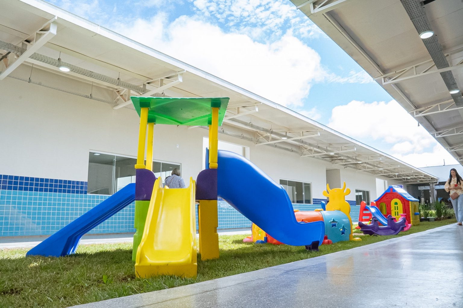 Com mais de 2 mil metros quadrados de área construída, o CEI Marta Ferreira Lopes foi projetado para oferecer um ambiente moderno, seguro, inclusivo para as crianças de 0 a 4 anos. (Foto: Anderson Oliveira/Secom)