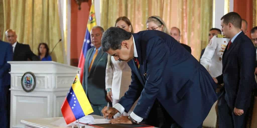 O presidente Maduro usou a cerimônia da sanção da lei para acusar os Estados Unidos (EUA) de instalar bases militares secretas no território da Guiana com o objetivo de agredir à Venezuela.
