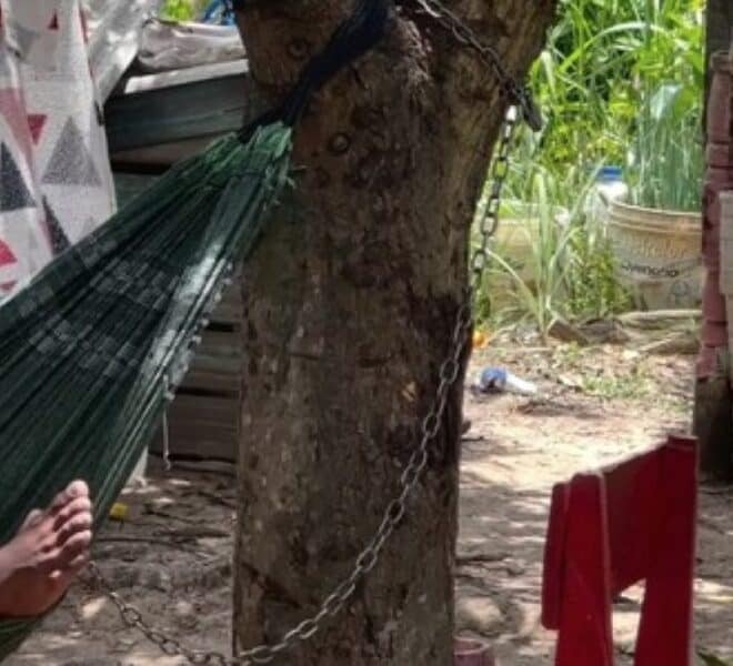 O desespero chocou a capital acreana nesta semana: uma mãe da região do Benfica, em Rio Branco acorrentou o próprio filho de 18 anos, dependente químico, à medida drástica como último recurso para proteção mútua. Foto: captada