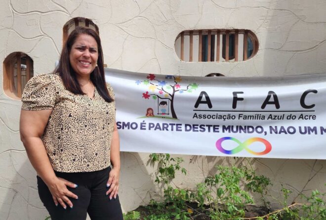“Há 10 anos eu venho nessa luta pelos direitos das pessoas com deficiência e agora com o Transtorno do Espectro Autista. A gente muda a nossa vida, a nossa rotina. A AFAC tem a missão de defender os direitos. Resolvi montar o espaço para gente acolher sócios e não-sócios, para acolher as mães e os autistas”.