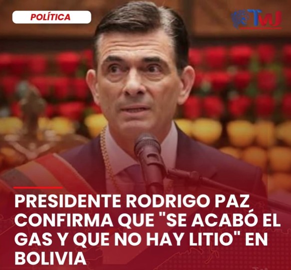 Presidente da Bolívia Rodrigo Paz, declara: “Acabou o gás e não temos lítio”