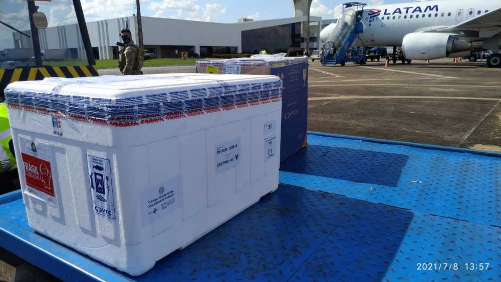 As vacinas chegaram ao estado acreano em um voo comercial que pousou no aeroporto de Rio Branco. O último lote de imunizantes recebido pela Saúde do Acre foi no domingo (4), um total de 9.750 doses da AstraZeneca.