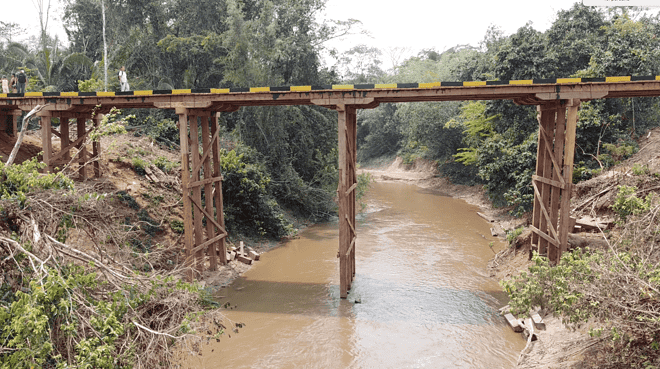 Seguindo o cronograma de investimentos em infraestrutura de ramais, planejado pela Secretaria de Obras e Planejamento, a Prefeitura de Brasileia está há 100 dias trabalhando na reconstrução da ponte do ramal do quilometro 59 que passa sobre o Rio Xapuri, dentro da Reserva Extrativista Chico Mendes, com recursos próprios e apoio do Governo do Acre com o bate-estaca e o engenheiro do Departamento de Estradas de Rodagens, Infraestrutura Hidroviária e Aeroportuária do Acre (Deracre)