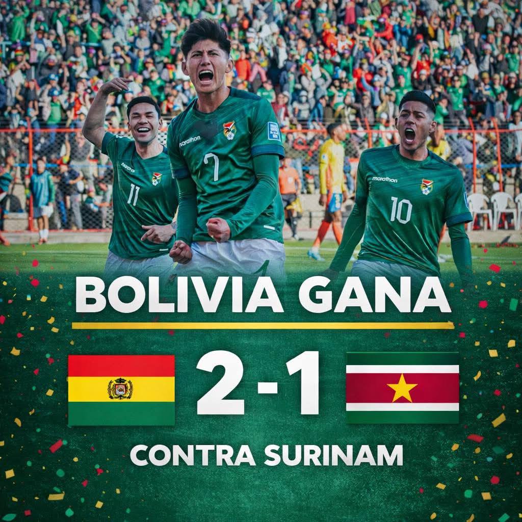 A seleção da Bolívia conquistou uma vitória emocionante por 2 a 1 sobre o Suriname, em partida marcada por intensidade e forte espírito de equipe.