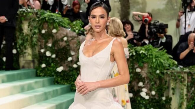 Ela escolheu um vestido longo branco, do estilista Tory Burch, para sua estreia no evento. As joias da artista chamaram atenção da web: com três brincos e dois anéis da Tiffany & Co, a atriz usou mais de R$ 4,6 milhões apenas nos acessórios. Os brincos maiores, de platina e ouro amarelo de 18 quilates, estão avaliados em R$ 755 mil. O segundo par de ornamentos é de platina com diamantes, custando uma bagatela de R$ 1,27 milhão, contando com 20 diamantes que contabilizam nove quilates. Já o terceiro, também com diamantes, custa R$ 499 mil.