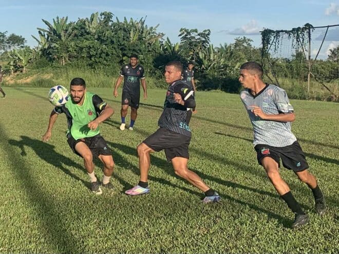 Elenco do Humaitá faz mais um treinamento no campo B antes do embarque para Manaus
