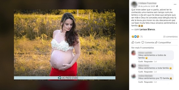 Diego contou que o segundo bebê nasceu em seguida, depois de uma pequena complicação. Ele achava que tudo estava bem e se despediu da esposa para acompanhar as crianças. Mais tarde, Diego recebeu a notícia de que Larissa tinha tido uma hemorragia e precisou fazer transfusão de sangue.