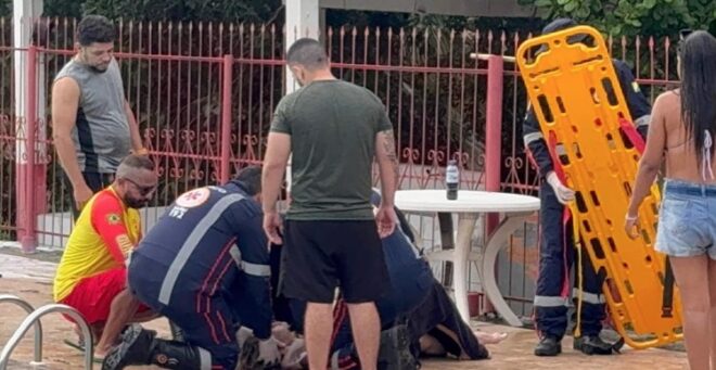 Mulher sofre queda e traumatismo leve após escorregar na piscina do Clube dos Bombeiros em Rio Branco