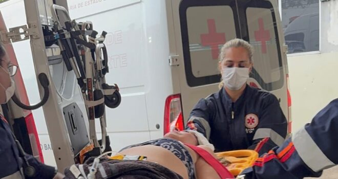 Hérica Amaral, 52 anos, luxou o punho e bateu a cabeça no piso; foi socorrida pelo Samu e levada ao Pronto-Socorro em estado estável