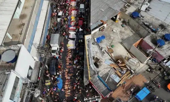 Corpos enfileirados em rua do Rio de Janeiro após operação policial mais letal da história da cidade • REUTERS/Ricardo Moraes