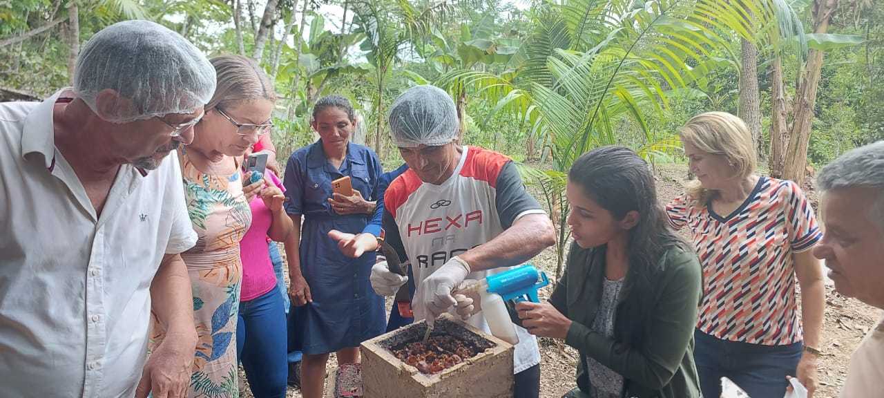 A capacitação, na modalidade de intercâmbio, reuniu 25 meliponicultores de Epitaciolândia e do Seringal Cachoeira, em Xapuri. Na oportunidade, os meliponicultores aprenderam técnicas sobre a multiplicação de enxame e colheita do mel. A formação foi ministrada pelo técnico da Emater Raimundo Alves da Costa, o Santinho, e Marineiva Menezes, da Emater em Xapuri.