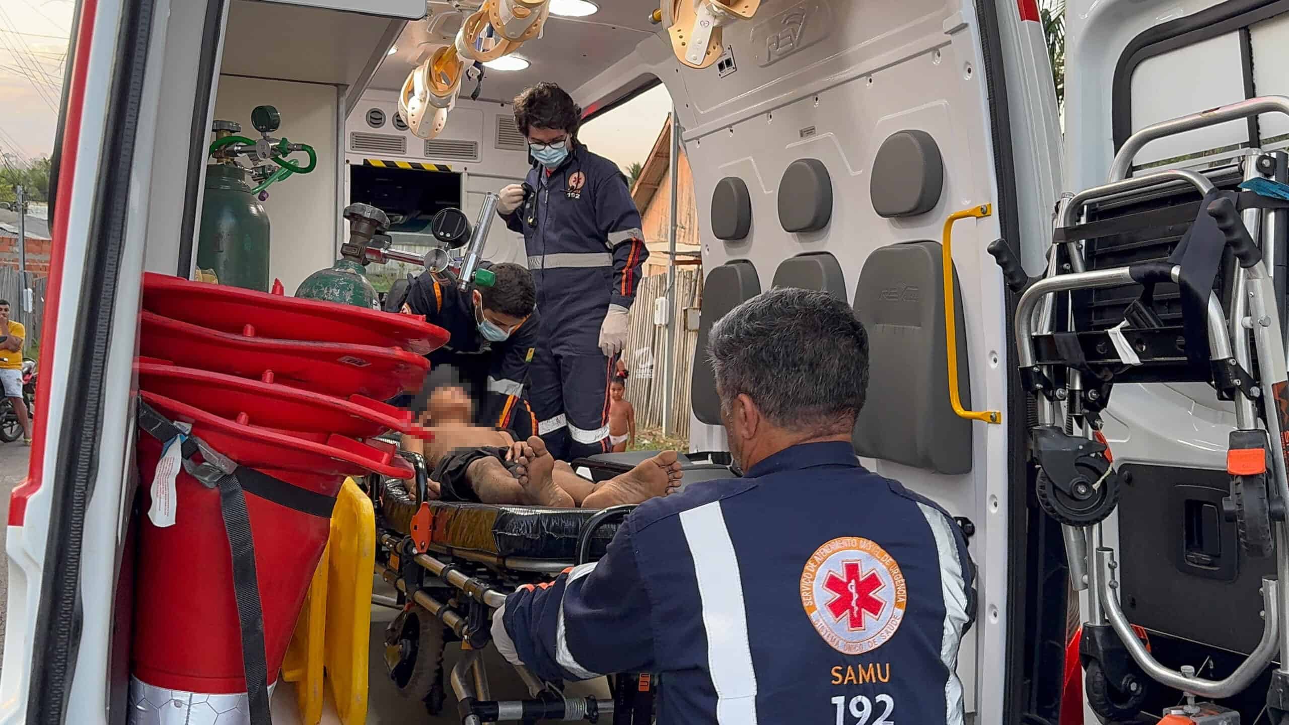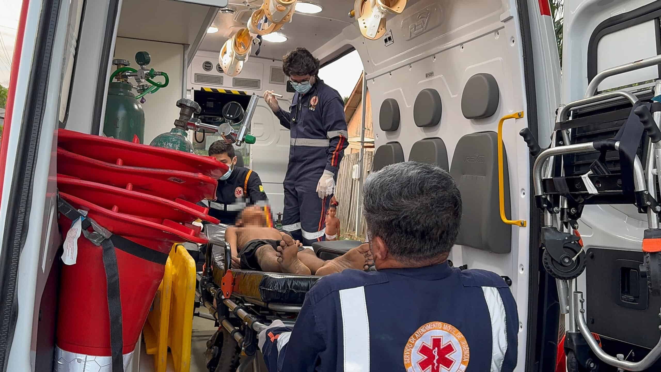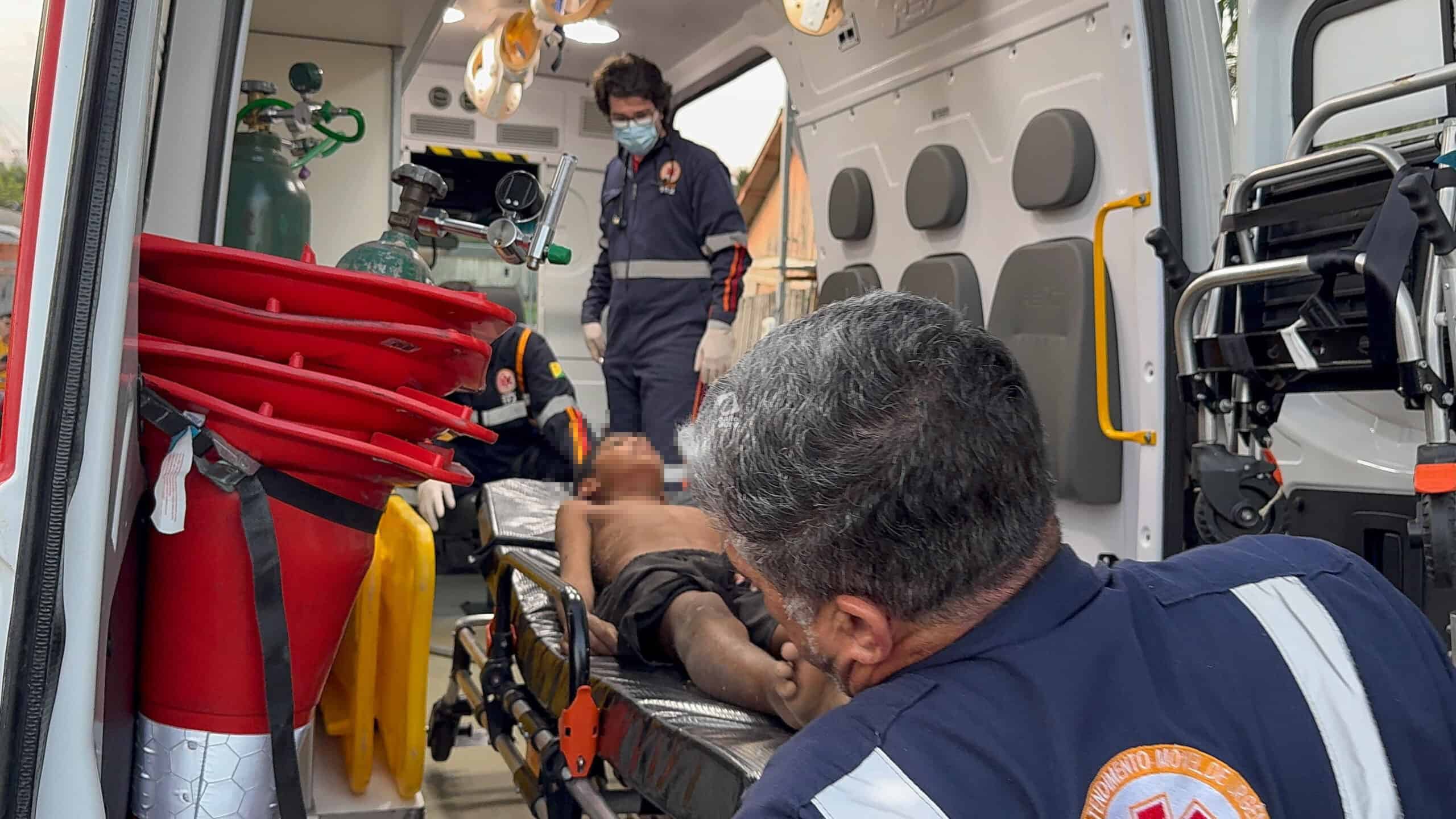 A família acionou o Serviço de Atendimento Móvel de Urgência (Samu), que enviou uma ambulância de suporte avançado. Quando a equipe chegou, o garoto já havia recobrado a consciência, mas apresentava dores intensas nas costas e não conseguia se mover.