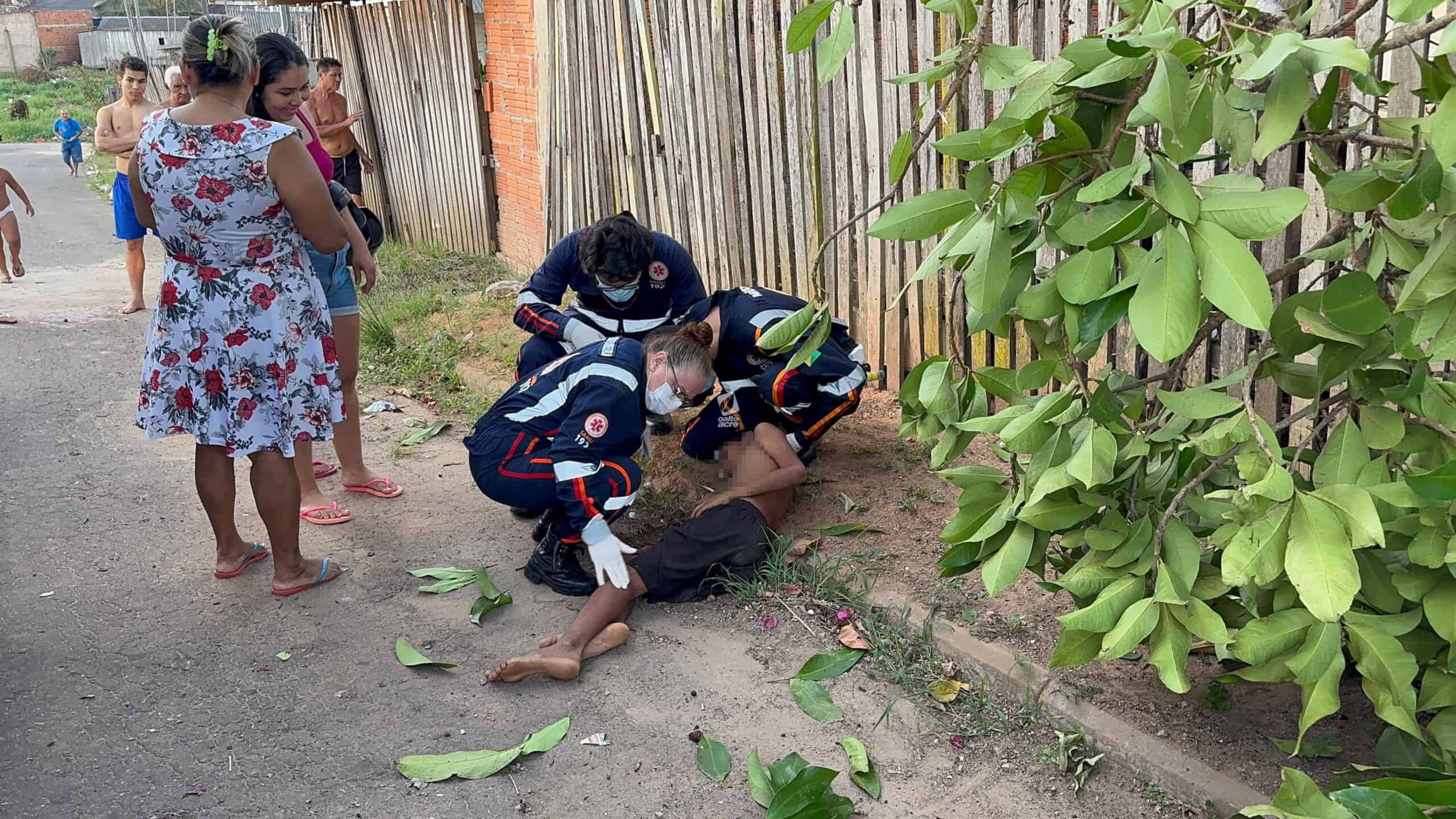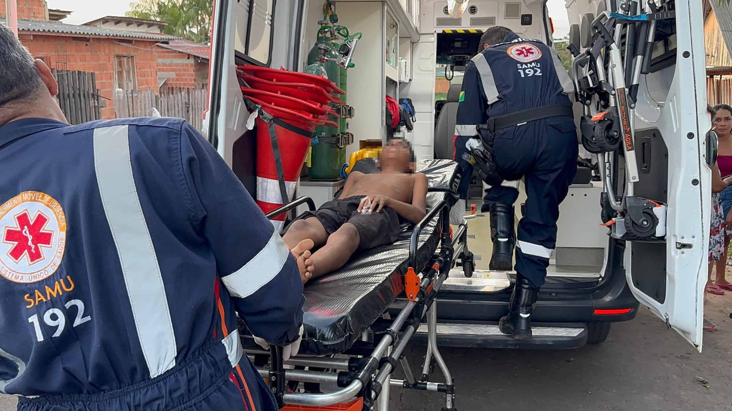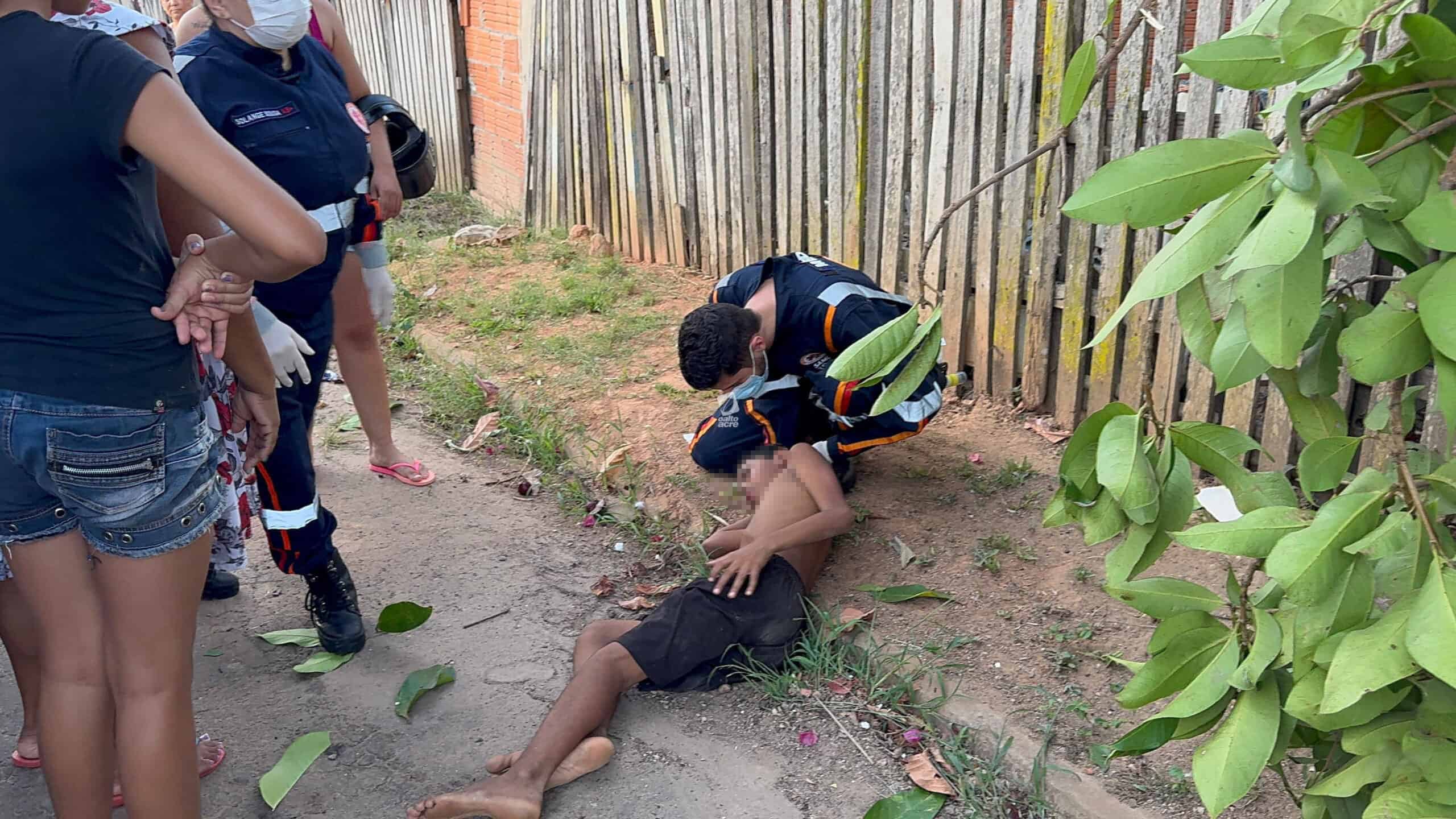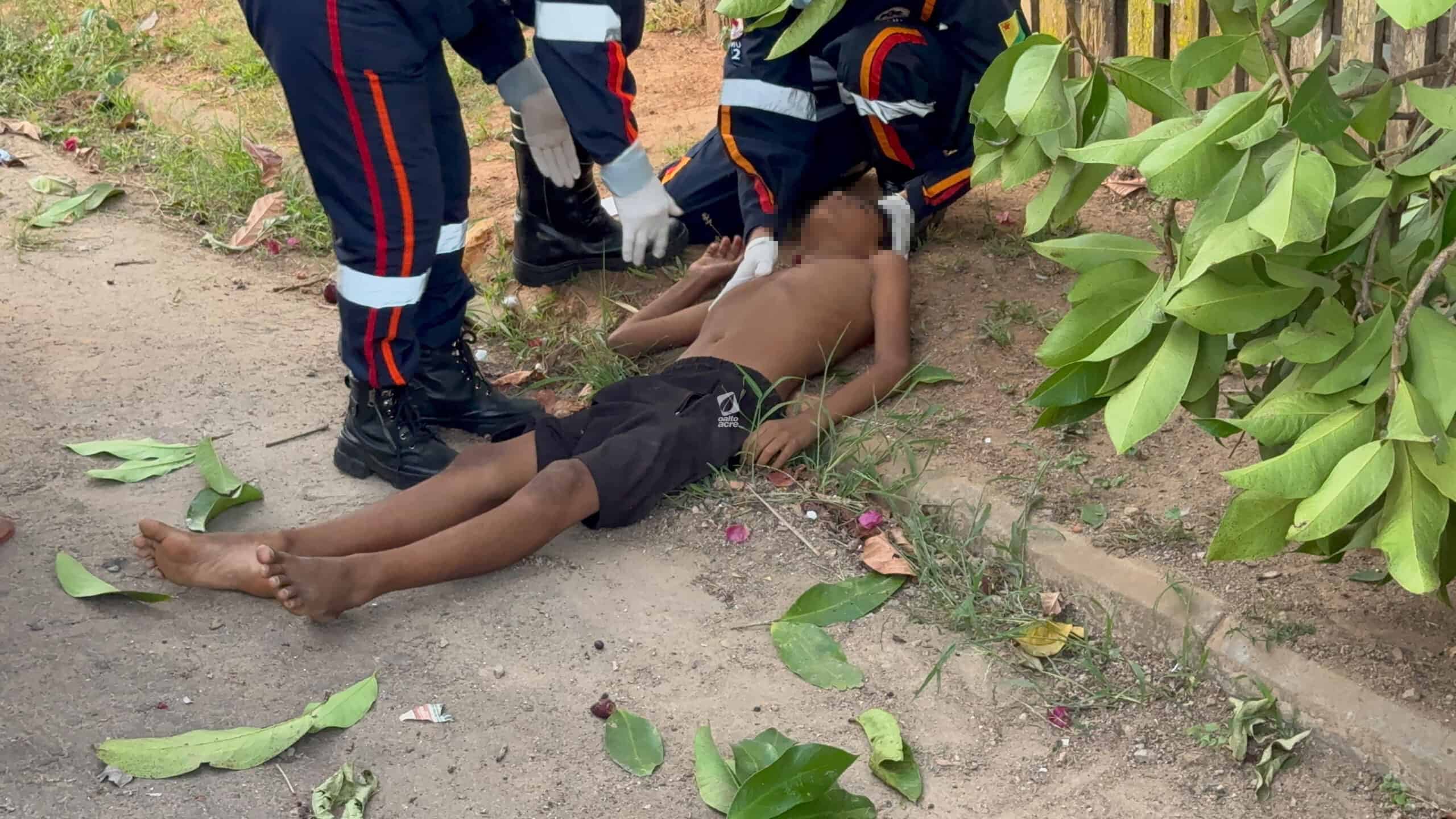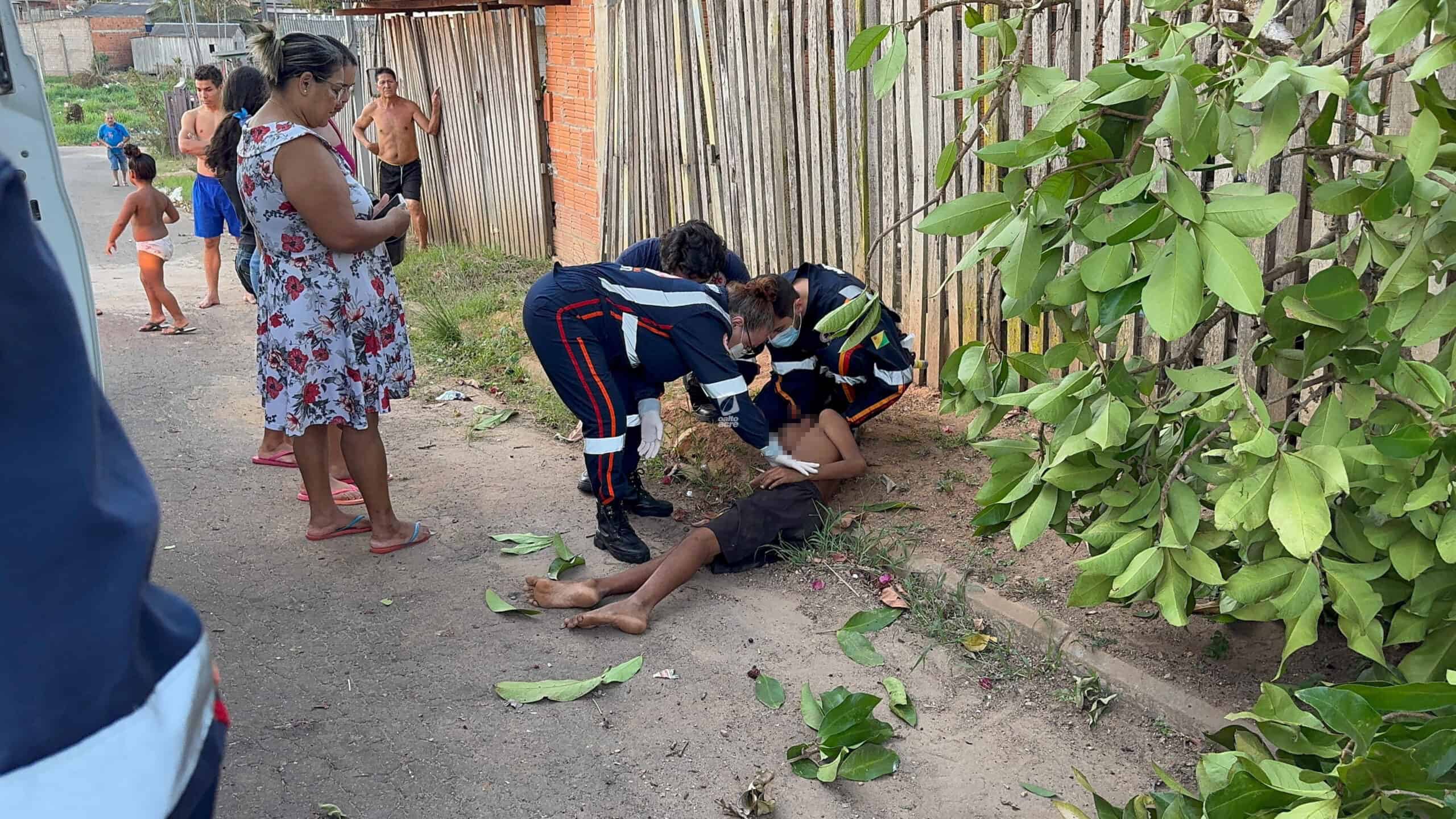 Um menino de 11 anos ficou ferido no final da tarde desta quinta-feira (14) após cair de uma árvore no quintal de sua casa, localizada na Travessa Benjamin, bairro Tancredo Neves, região do Montanhês, em Rio Branco. Ele tentava colher jambo quando um dos galhos se rompeu, provocando a queda.