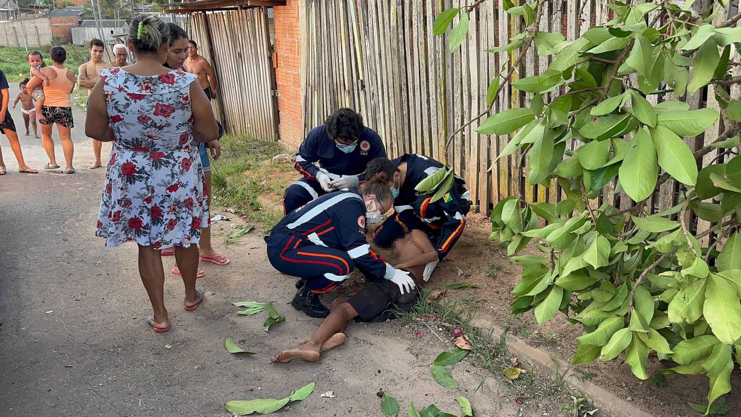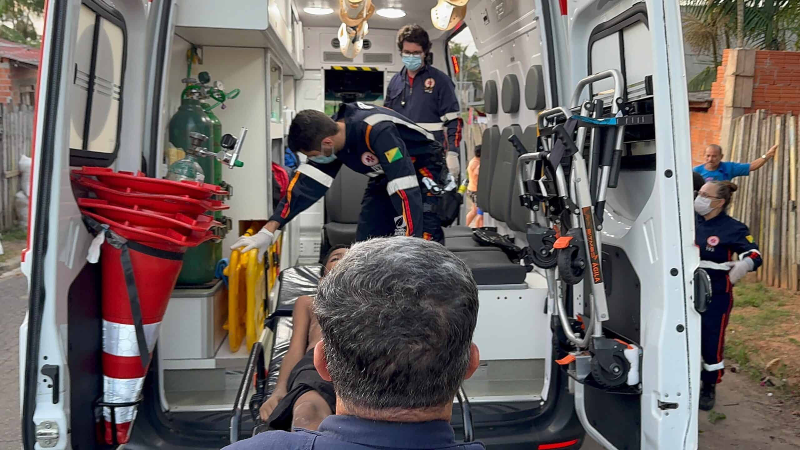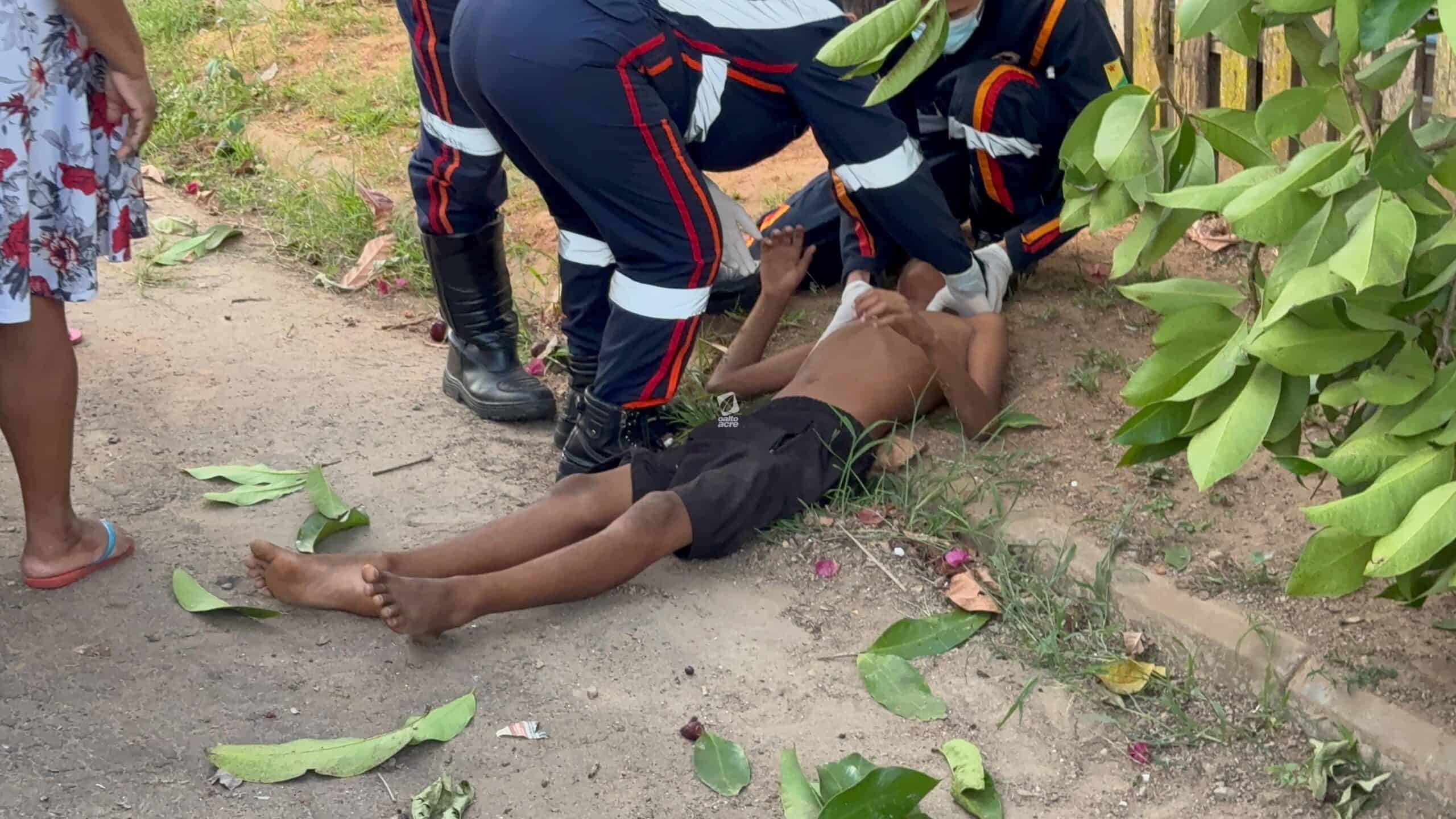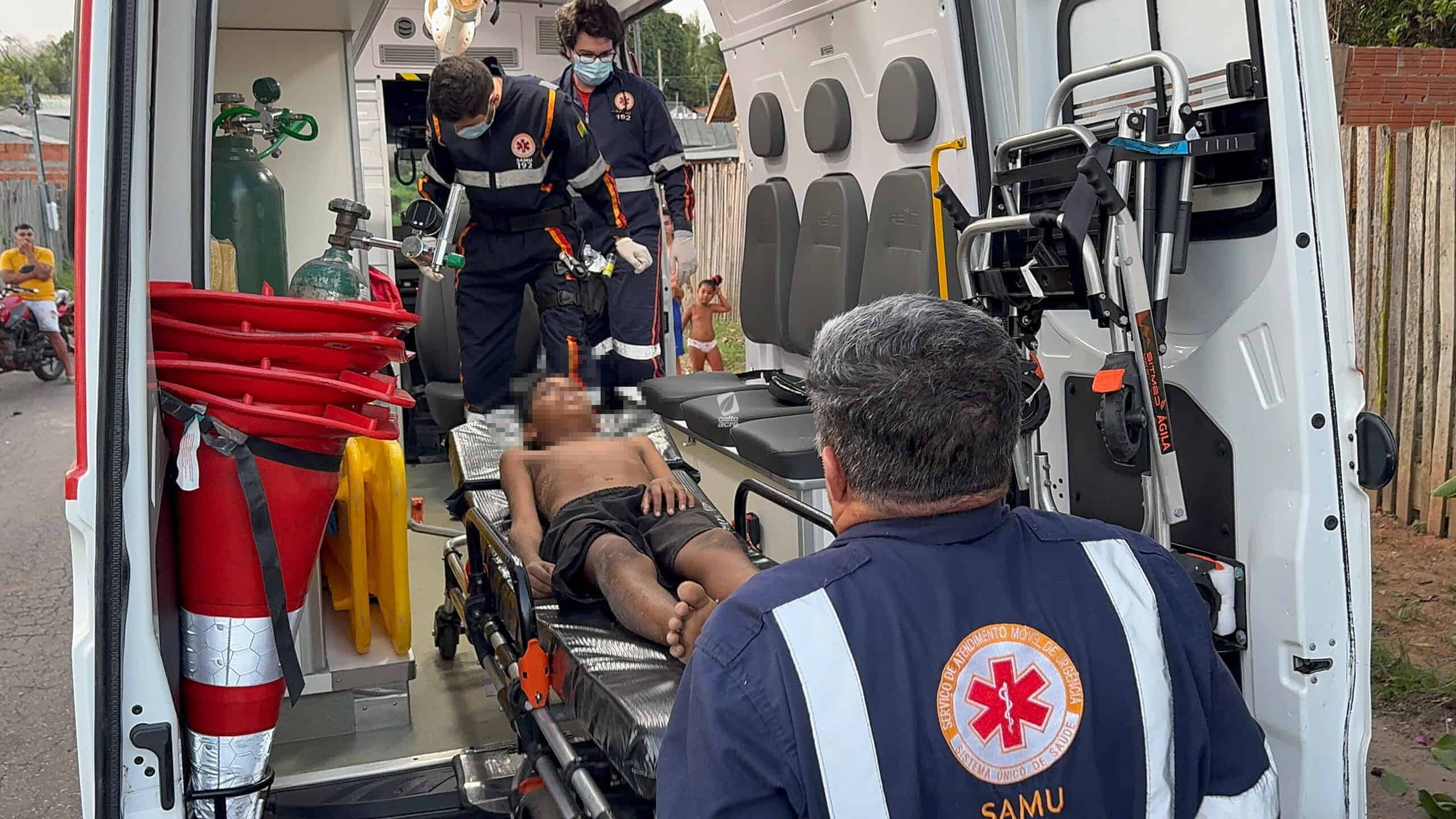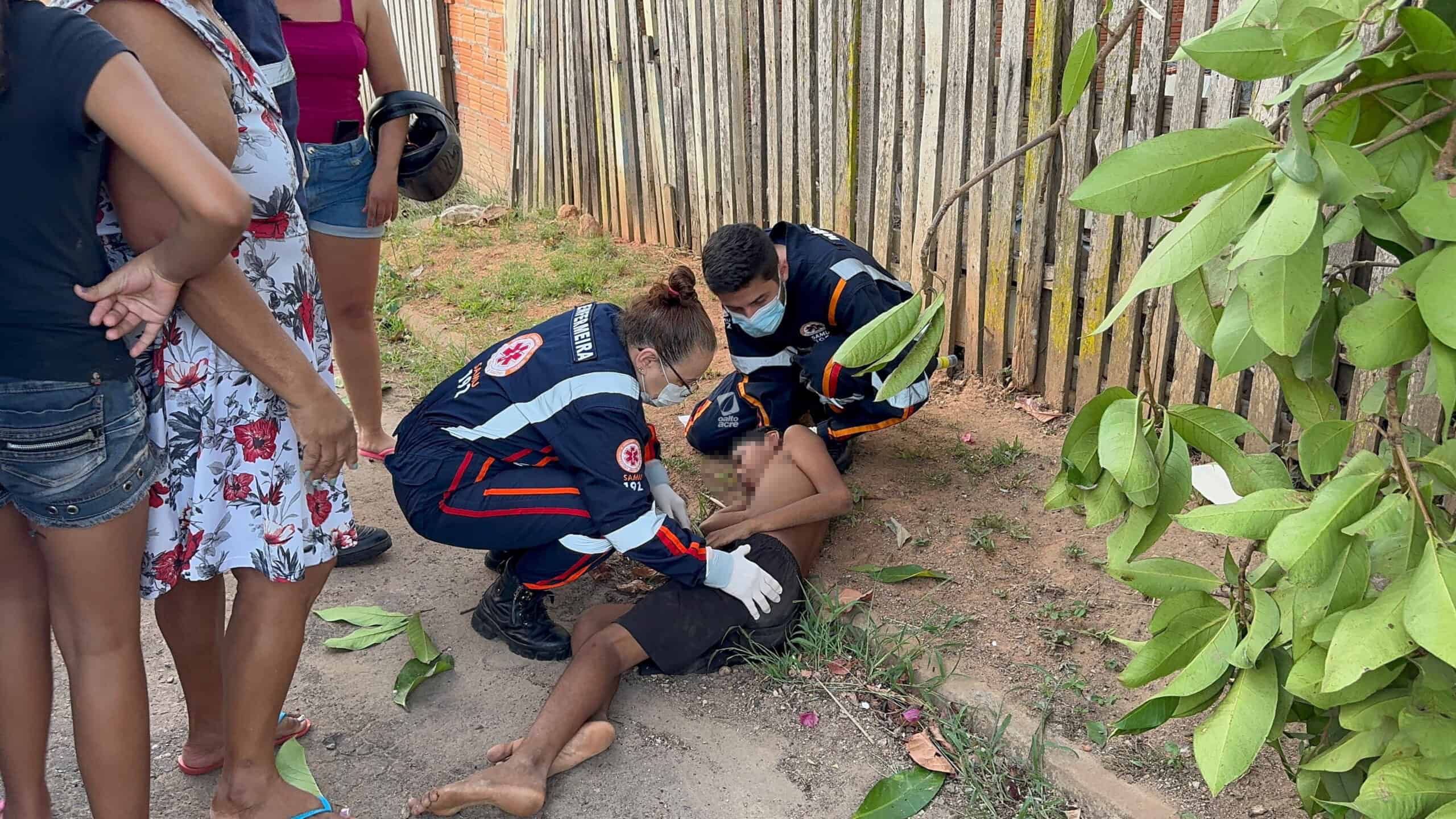 Um menino de 11 anos ficou ferido no final da tarde desta quinta-feira (14) após cair de uma árvore no quintal de sua casa, localizada na Travessa Benjamin, bairro Tancredo Neves, região do Montanhês, em Rio Branco. Ele tentava colher jambo quando um dos galhos se rompeu, provocando a queda.