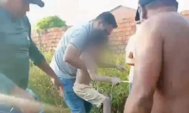 hegando lá, familiares e amigos ouviram a criança pedindo socorro e, com o auxílio de uma corda, conseguiram resgatá-lo.