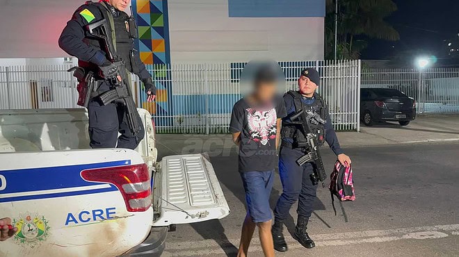 Informações passadas, um adolescente de 17 anos foi apreendido. Ele é acusado do delito de porte ilegal de arma de fogo, na noite desta segunda-feira (18), na Travessa da Judia, no bairro Recanto dos Buritis, na região do Segundo Distrito de Rio Branco.