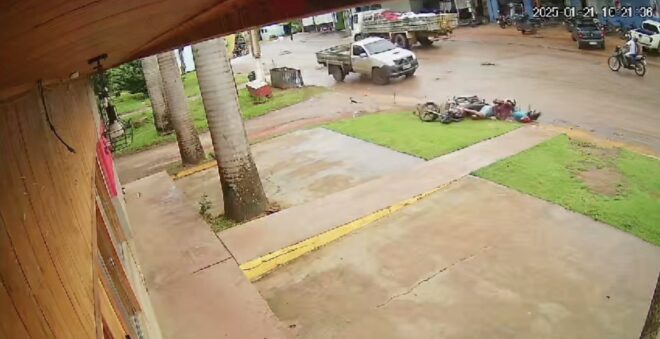 Na tentativa de evasão, o condutor da motocicleta tentou uma ultrapassagem pela direita ao desviar de uma caminhonete que contornava um buraco na Avenida Manoel Marinho Montes. A manobra resultou na perda de controle da motocicleta, lançando ambos os ocupantes ao solo.