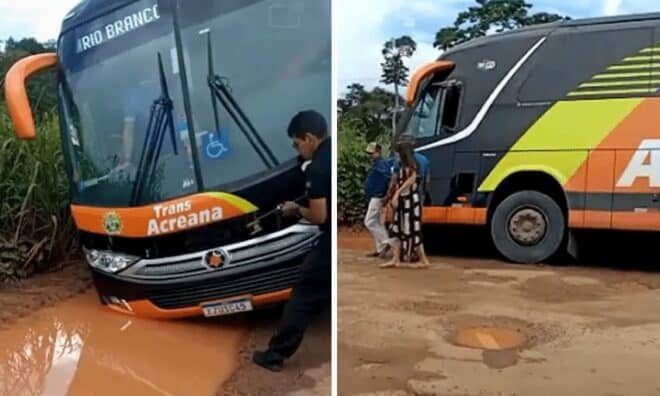 Enquanto as obras de recuperação não começam, a população sofre com as condições. Imagens que circulam nas redes sociais mostram um ônibus atolado na BR. É possível ver os passageiros tendo que descer pela janela, já que o veículo “caiu” em um buraco.