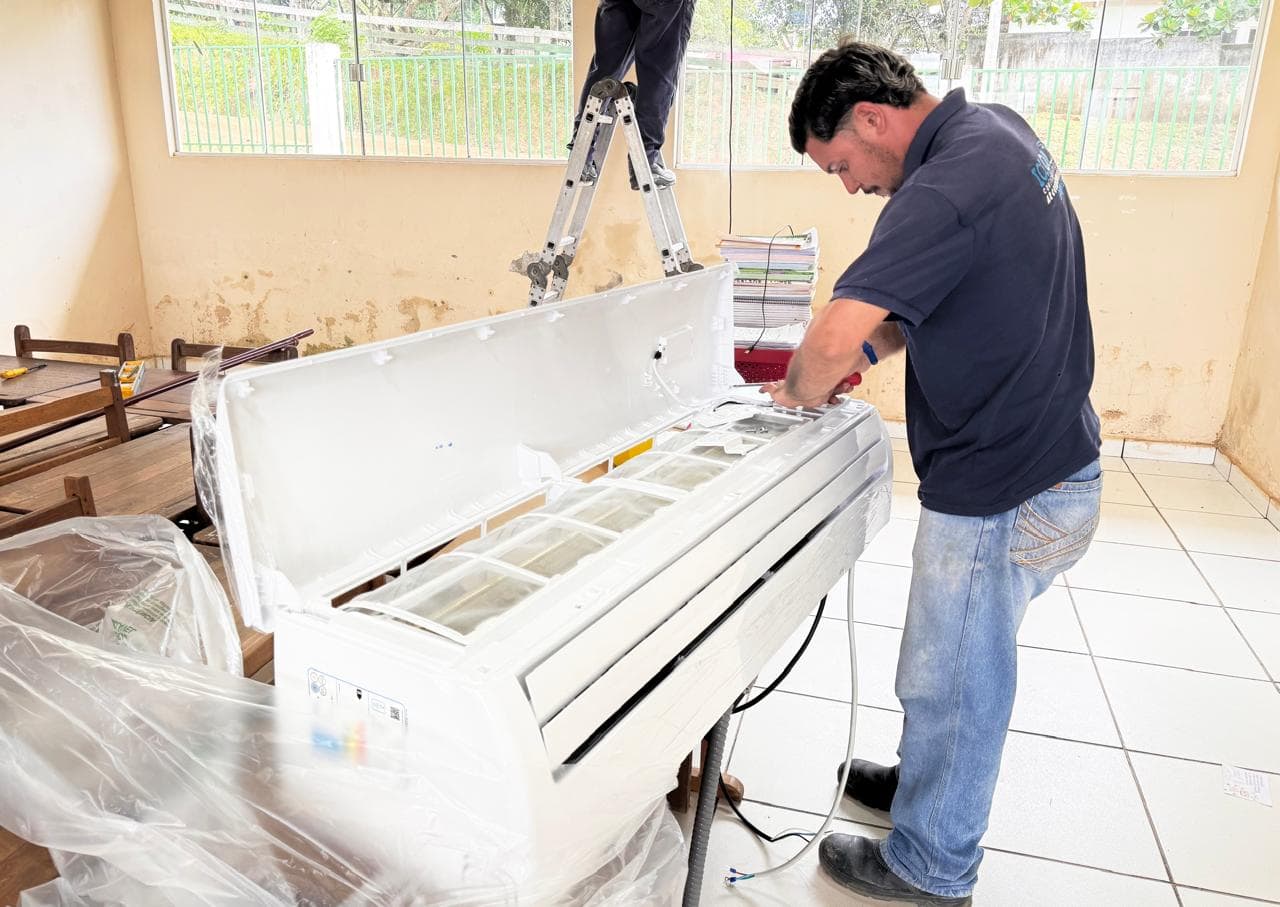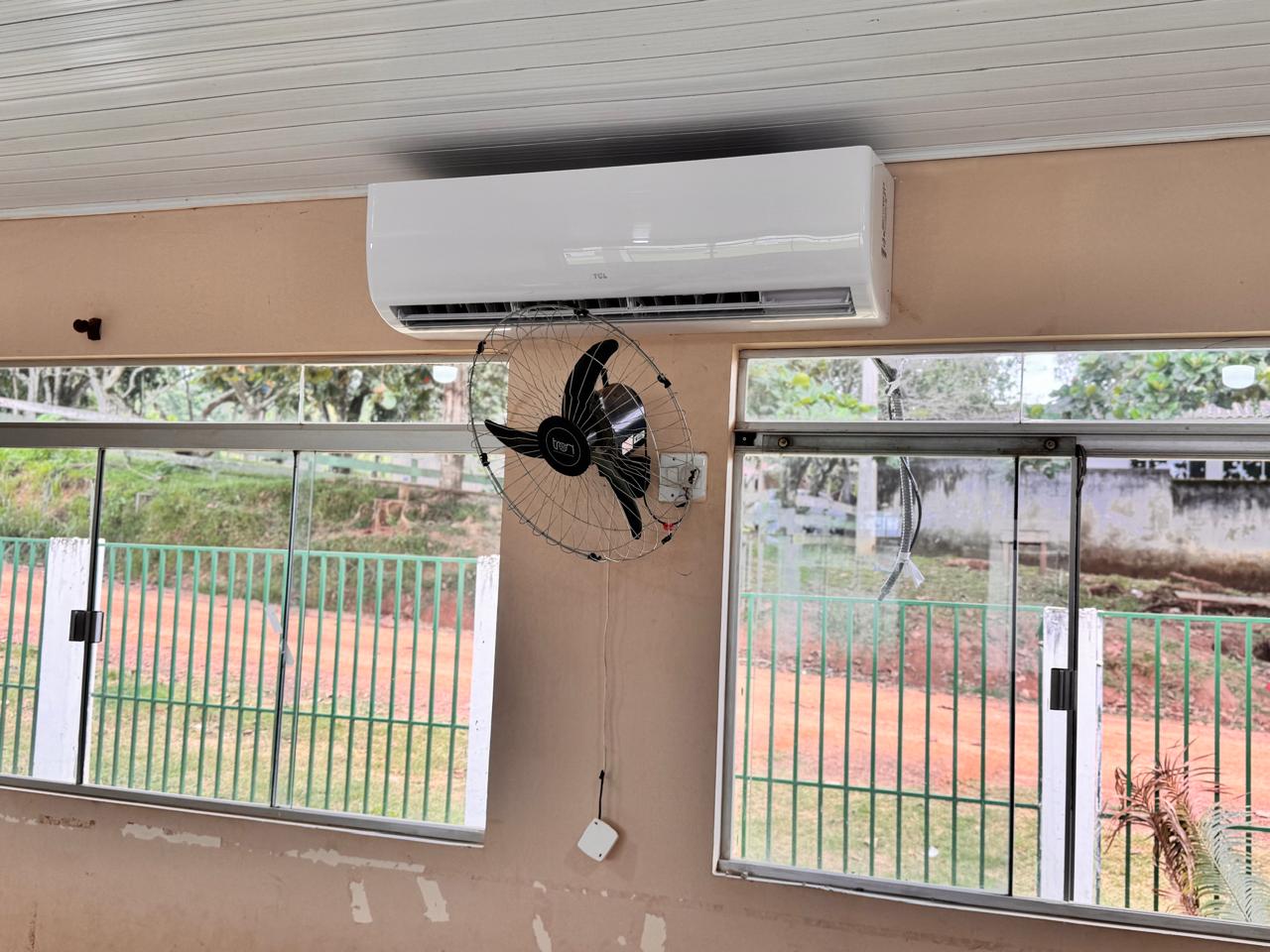 Construída em 2016, a unidade de ensino atende atualmente cerca de 160 alunos de diversas comunidades rurais e está recebendo, pela primeira vez, a climatização das salas de aula e também dos setores administrativos.Ao todo, são 13 salas que estão recebendo climatizadores.