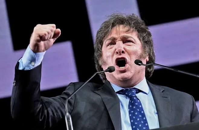 Dizendo-se libertário e apresentando-se como antissistema, Milei defende a dolarização da economia e a extinção do Banco Central. Ele já prometeu legalizar o comércio de órgãos, quer taxar a educação e saúde públicas e ataca supostas ameaças comunistas em seus discursos.
