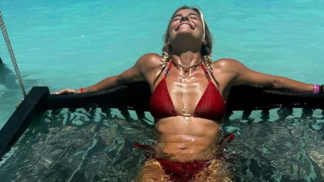 “Vivendo um sonho… Gratidão Deus e a todos que nos proporcionaram tudo isso”, escreveu ela, na manhã de sábado (20). Milene, que é mãe de Ronald, de seu extinto casamento com Ronaldo Fenômeno, apostou em um biquíni vermelho e posou dentro do mar em um balanço.