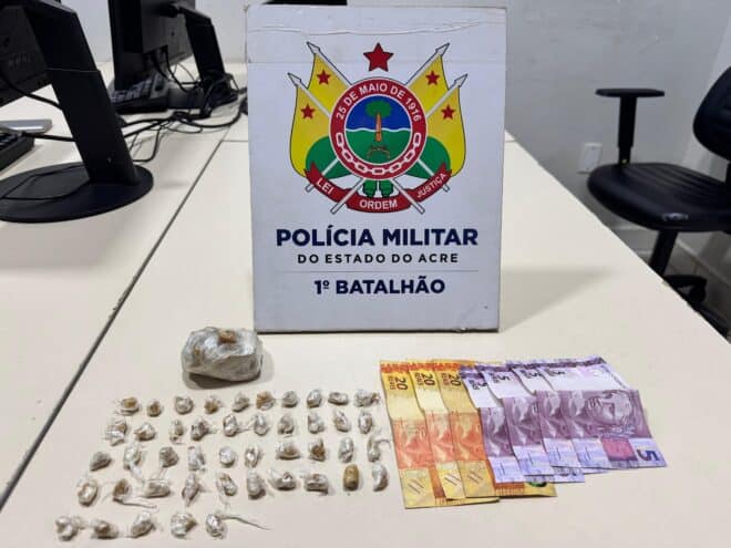 Durante a busca pessoal, foram encontradas diversas cédulas com o envolvido. No local onde ele havia arremessado a sacola, os policiais localizaram 45 pedras de uma substância semelhante a crack, prontas para venda ou consumo, pesando aproximadamente 28 gramas. Além disso, uma pedra maior, ainda não fragmentada e também parecida com crack, pesando cerca de 76 gramas, foi apreendida.