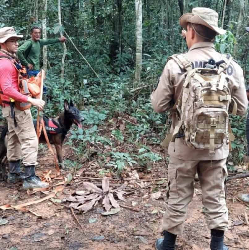 Militares e cão de busca realizam operação para localizar homem desaparecido na floresta de Sena Madureira