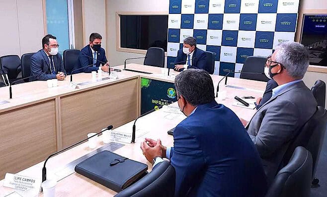 Acompanhado do presidente do Departamento de Estradas de Rodagem do Acre (Deracre), Petrônio Antunes, Gladson Cameli se reuniu com o ministro e com o diretor-geral do Departamento Nacional de Infraestrutura Terrestre (Dnit), Antônio Santos Filho, para definir questões sobre obras que interessam ao estado do Acre.