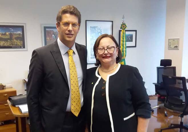 Numa audiência marcada pela intensa troca de experiências em relação à questão ambiental, o ministro do Meio Ambiente, Ricardo Salles, conversou longamente ,esta terça-feira(19),em Brasilía, com os deputados Vanda Milani(SD) e Alan Rick(DEM).O ministro adiantou a implantação, em breve, da chamada Audiência de Conciliação Ambiental, uma inovação que vai possibilitar com que o homem do campo escolha a forma de composição de sua pendência ambiental tendo como conciliadora a Advocacia Geral da União(AGU).