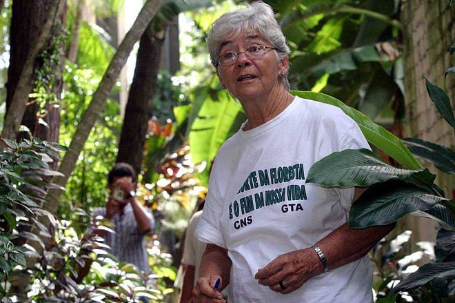 Dorothy Stang chegou ao Brasil nos anos 1970 para realizar trabalhos pastorais na região amazônica. Sua atuação focou projetos de reflorestamento e de geração de emprego e renda para a população pobre local. Foi assassinada aos 73 anos e sua morte se tornou um símbolo da luta por reforma agrária planejada e responsável, que visasse minimizar conflitos violentos, uma de suas principais bandeiras.