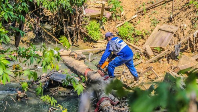“Com certeza, a desobstrução dos riachos, dos igarapés ajuda na vazão do volume de água. Quando você tem uma série de entulhos dentro do leito dos igarapés, cria isso prejuízos. O trabalho mesmo é de revitalização, no caso dos igarapés. É um projeto que vai precisar de um volume de recursos significativo junto ao Ministério das Cidades e nós vamos ajudar na elaboração do projeto”, explicou Marina.