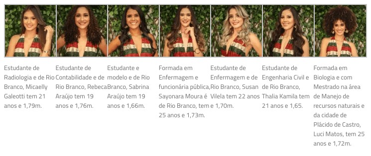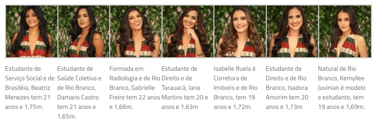 Nesta edição, além das candidatas de Rio Branco, o concurso contará também com participantes das cidades de Tarauacá, Plácido de Castro e Brasiléia.