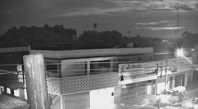O crime aconteceu por volta das 4h59 da manhã. Nas imagens é possível ver, quando Valcemir Tavares, escala o portão da empresa para ter acesso a área interna.