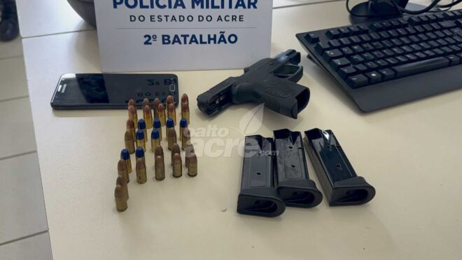 Na tarde desta terça-feira (2), Gerberson da Costa do Nascimento, 37 anos, monitorado por tornozeleira eletrônica, foi detido sob a acusação de porte ilegal de arma de fogo. A prisão ocorreu na rua Fortaleza do Abunã, Loteamento Praia do Amapá, no Segundo Distrito de Rio Branco.