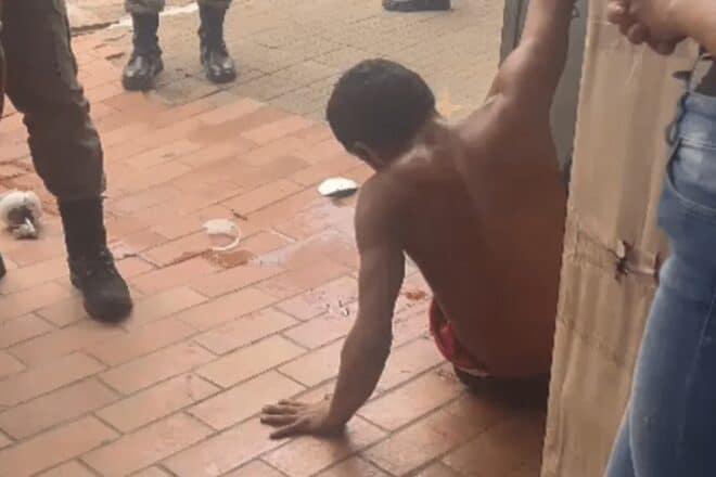 O morador em situação de rua Carlos Alberto Gurgel de Lima, de 21 anos, foi ferido com um tiro na perna após agredir uma senhora de 56 anos e reagir a prisão na manhã deste sábado 18, na Avenida Getúlio Vargas, em frente a uma loja de eletrodomésticos, no centro de Rio Branco.