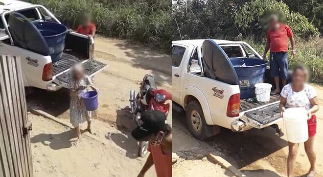 No decorre do dia desta quinta-feira, moradores gravaram um morador levando água para uma das casas, e no meio, uma senhora de aproximadamente 90 anos, ajuda levando um balde cheio para dentro de casa.