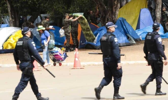 Polícia e Exército se concentram na frente do QG do Exército para desmobilizar acampamento
