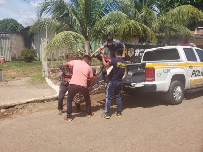 Na manhã desta quarta-feira, dia 28, o comando da Polícia Militar do 5º Batalhão do Alto Acre, recebeu uma denuncia da suposta moto que estaria na posse de uma pessoa no ramal do km 75 da BR 317, Estrada do Pacífico.