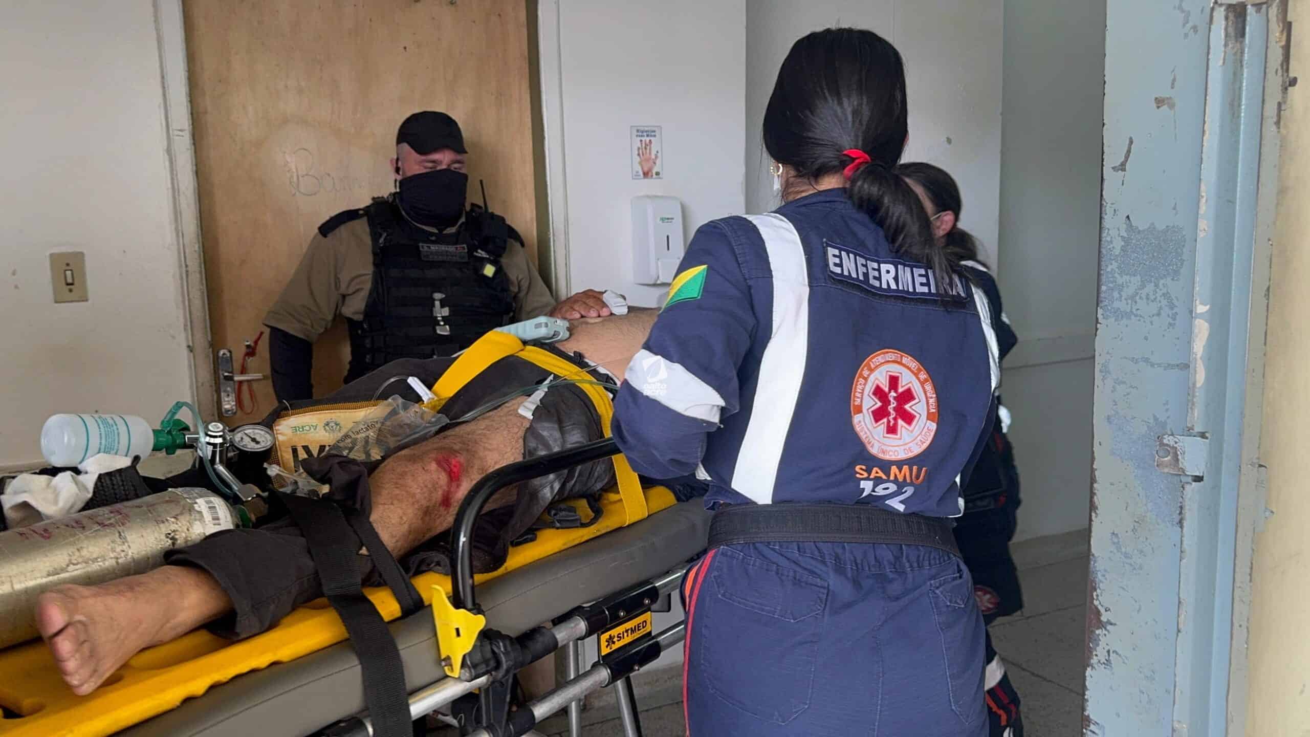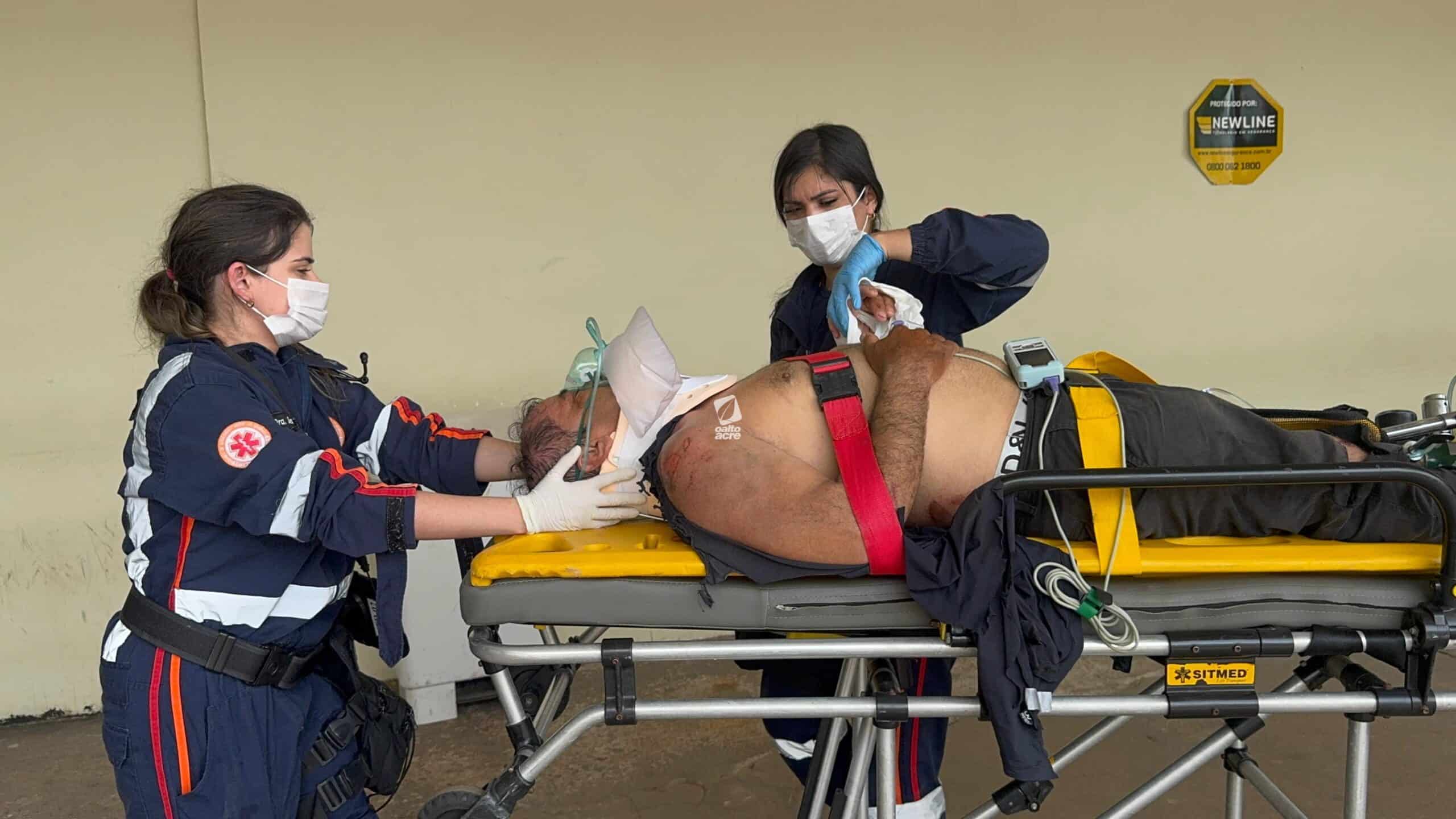 O Serviço de Atendimento Móvel de Urgência (Samu) prestou os primeiros socorros ao jovem ainda no local. Devido à gravidade dos ferimentos, ele foi levado inicialmente ao Hospital João Câncio Fernandes e, em seguida, transferido para o Pronto-Socorro de Urgência e Emergência de Rio Branco.