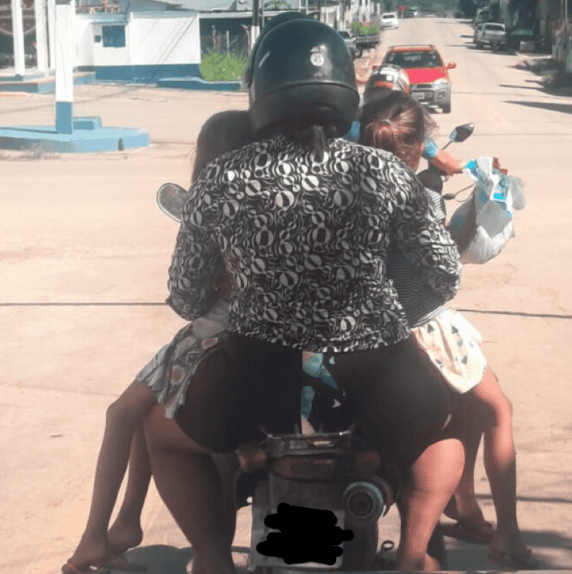 De acordo com testemunhas, as crianças estavam no colo de uma mulher na garupa da motocicleta, sentadas sobre as pernas dela. A motocicleta, que tem capacidade para apenas dois ocupantes (o condutor e um passageiro), transitava com quatro pessoas, o que representa uma grave violação às regras de segurança.
