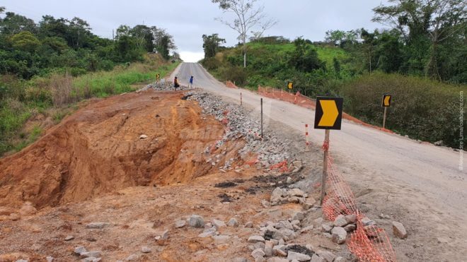 Cratera localizada na BR 317, a 28km de Epitaciolândia vem registrando acidentes – Foto: Alexandre Lima/Arquivo