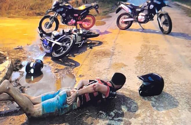 Em uma curva feita em alta velocidade, o condutor perdeu o controle da motocicleta e caiu no asfalto, sofrendo escoriações no rosto, pernas e braços. Após a queda, foi interceptado e algemado para evitar nova tentativa de fuga.