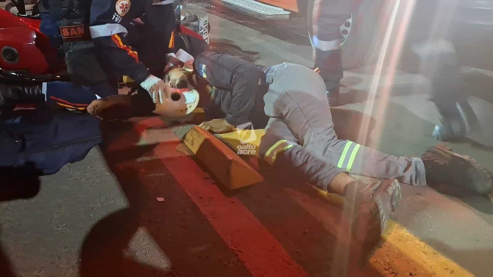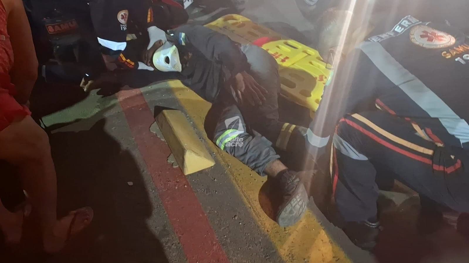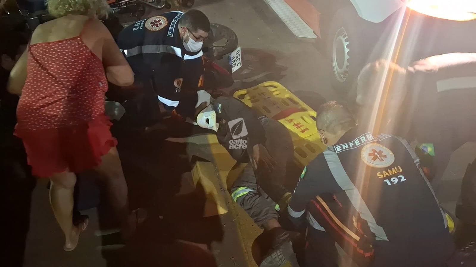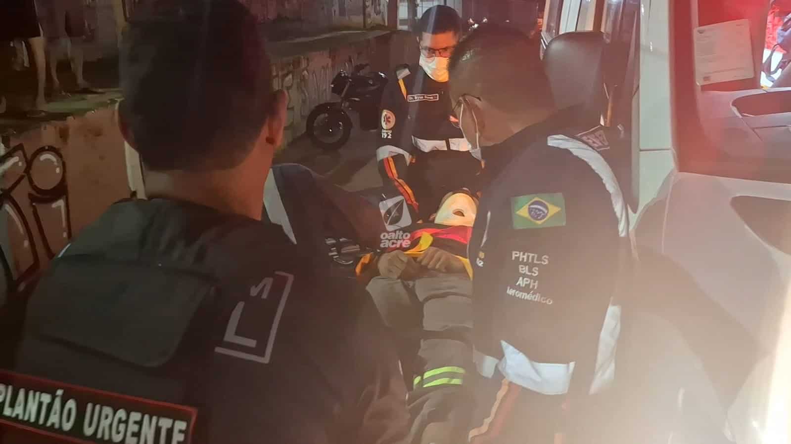 Com o impacto, o motociclista sofreu uma fratura exposta na perna. Populares acionaram o Serviço de Atendimento Móvel de Urgência (Samu), que enviou uma ambulância de suporte avançado ao local. Após receber os primeiros atendimentos, ele foi encaminhado ao Pronto-Socorro de Rio Branco, onde os médicos confirmaram fraturas na tíbia e fíbula.