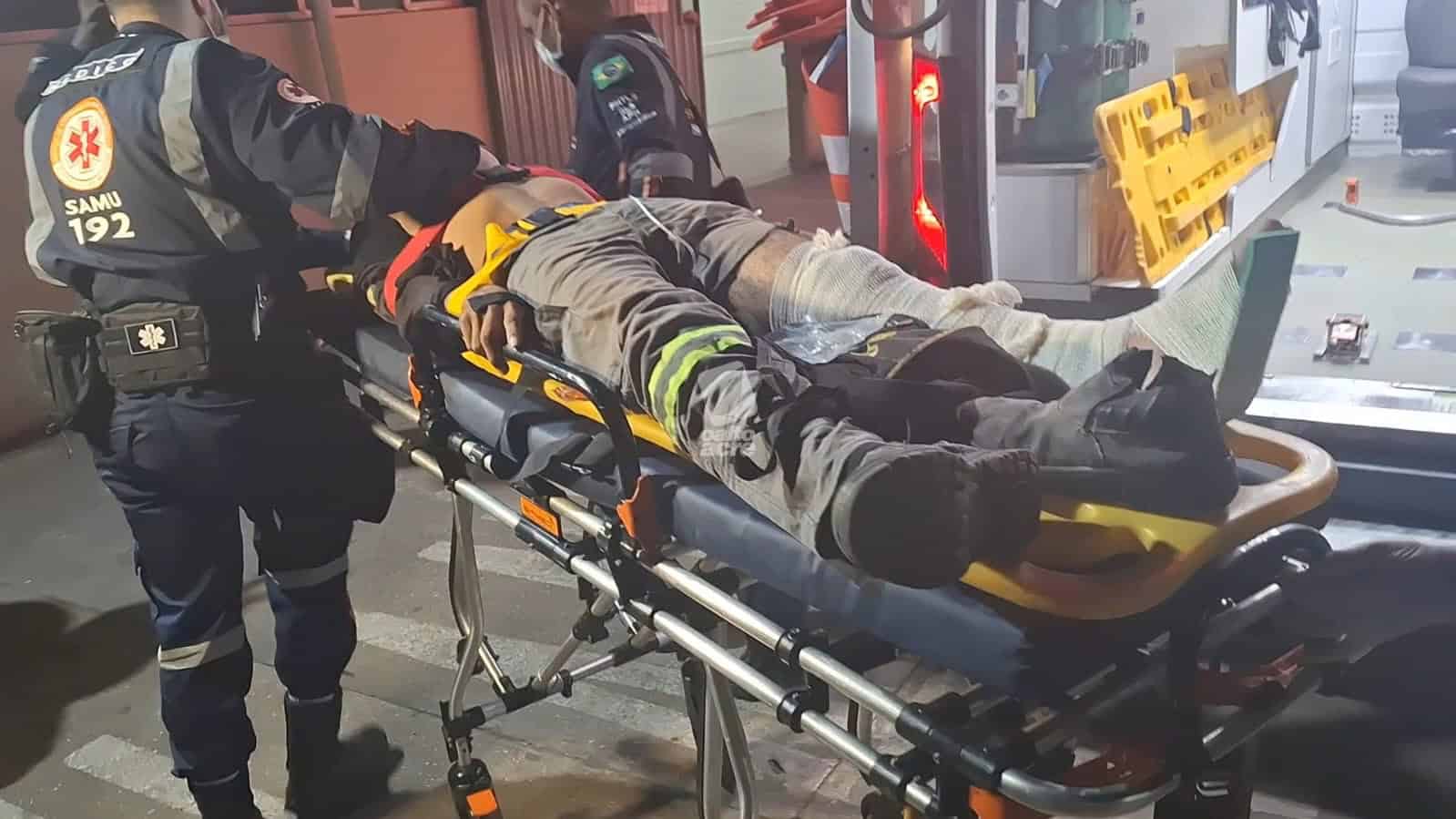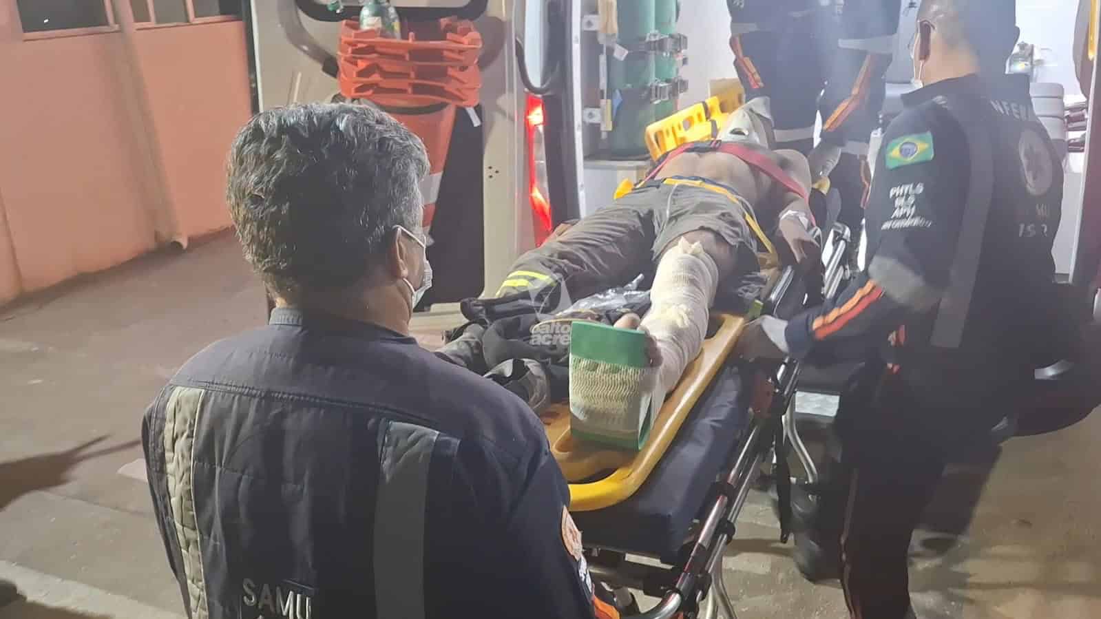 Jovem de 22 anos sofreu fratura exposta na perna e foi encaminhado ao Pronto-Socorro; estado de saúde é estável