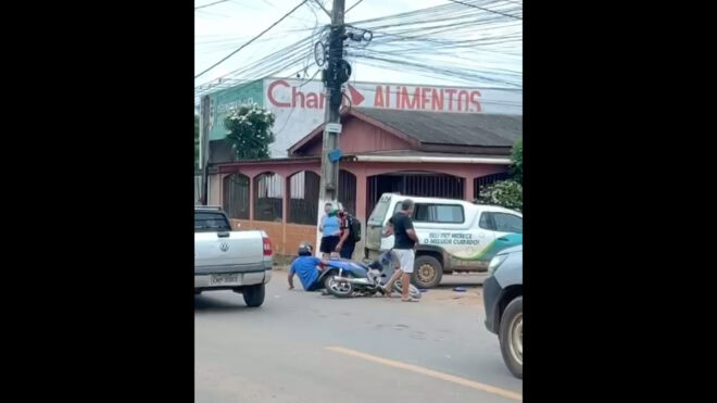 Um motociclista ficou ferido após se chocar contra a lateral de um utilitário pertencente a uma empresa particular, por volta das 11h deste sábado (13), em Brasiléia. Os condutores envolvidos no acidente não tiveram as identidades divulgadas.